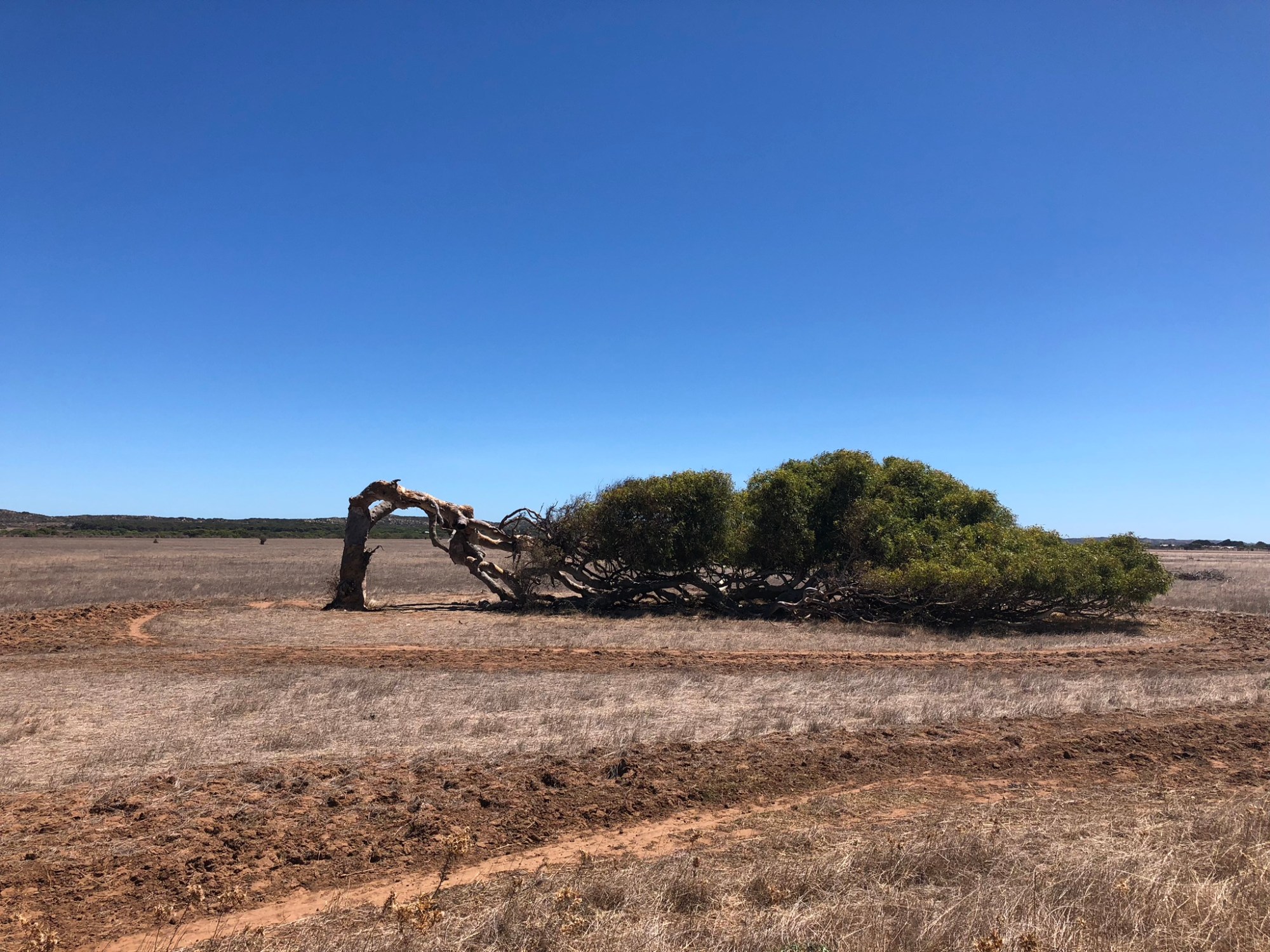 The winds along the coast blow nearly constantly west to east. As a consequence, the trees here lean and a few grow horizontally. This particular tree is rather famous.